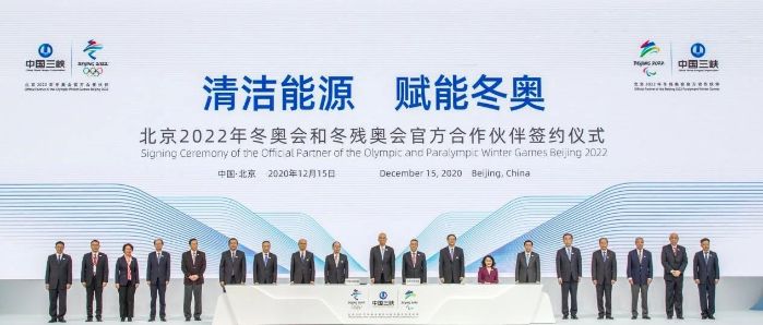 在北京冬奥组委成立五周年之际,三峡集团与北京冬奥组委在国家游泳中心举行签约仪式,正式成为北京2022年冬奥会和冬残奥会官方发电合作伙伴。