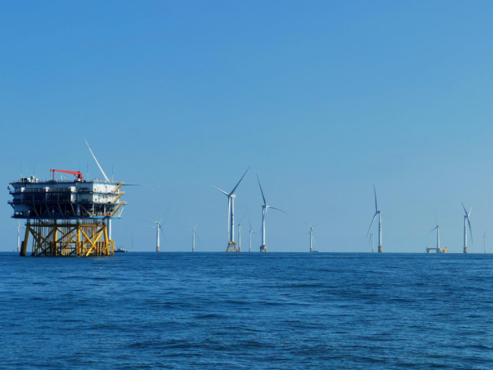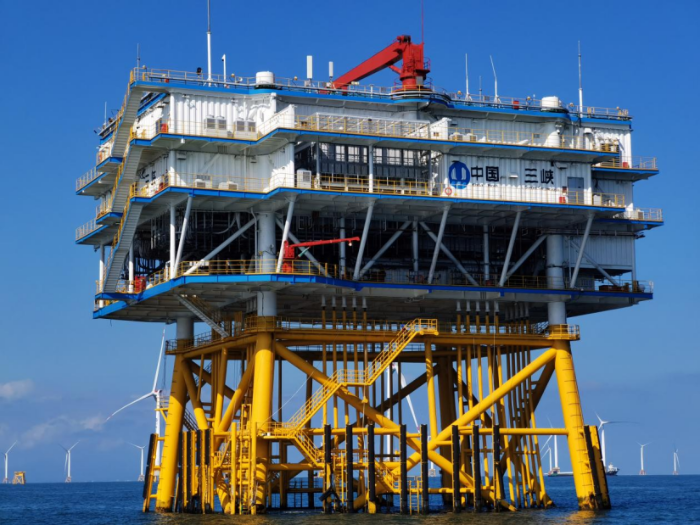 ——集中连片开发大容量升压站,实现超高电压等级送出,在满足功能需求的基础上,布局更为紧凑,创下当期全球单体容量最大、单位千瓦重量最轻海上升压站的纪录。