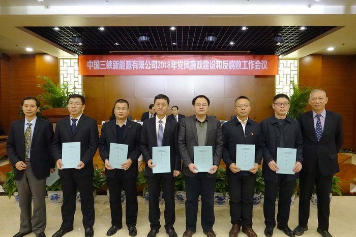 会上,三峡新能源党委书记王敦春和纪委书记袁英平向各二级单位颁发2018年度党风廉政建设和反腐败工作责任书。