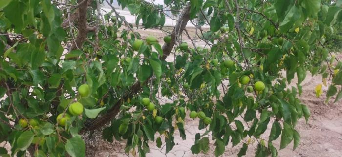 ▲ 三峡能源新疆连木沁光伏二电站内的杏树已是硕果累累