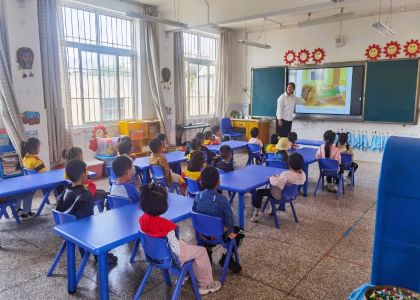 ▲ 四川省攀枝花市仁和区平地镇中心学校幼儿园老师正在使用“班班通”给孩子讲绘本故事 摄影:但棣瑶