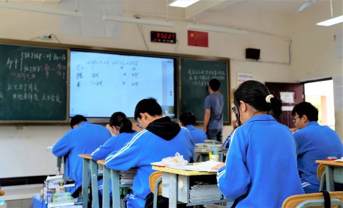 ▲ 云南省昆明市禄劝县第一中学课堂上老师正在使用“班班通”讲解习题 摄影:孙恺