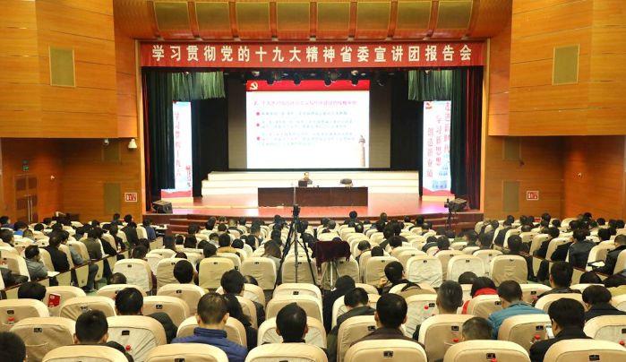 刘光远教授在报告中指出,党的十九大是在全面建成小康社会决胜阶段、中国特色社会主义进入新时代的关键时期召开的一次十分重要的大会,也是一次在新的历史起点上开启党和国家事业新征程的大会,更是一次不忘初心、牢记使命、高举旗帜、团结奋进的大会。广大党员干部要切实落实十九大精神,一是要在学懂上下功夫,领导干部首先要带头学,真学懂。二是要在弄通上下工夫,全面把握党的十九大的丰富内涵、精神要义,联系地而不是孤立地、系统地而不是零散地、全部地而不是局部地理解党的十九大精神。三是要在做实上下功夫,通过学习进一步增强四个意识,坚决维护以习近平同志为核心的党中央权威;强化理论武装,以习近平新时代中国特色社会主义思想武装头脑;做好本职工作,确保党的十九大精神在本地本单位落地生根见效。