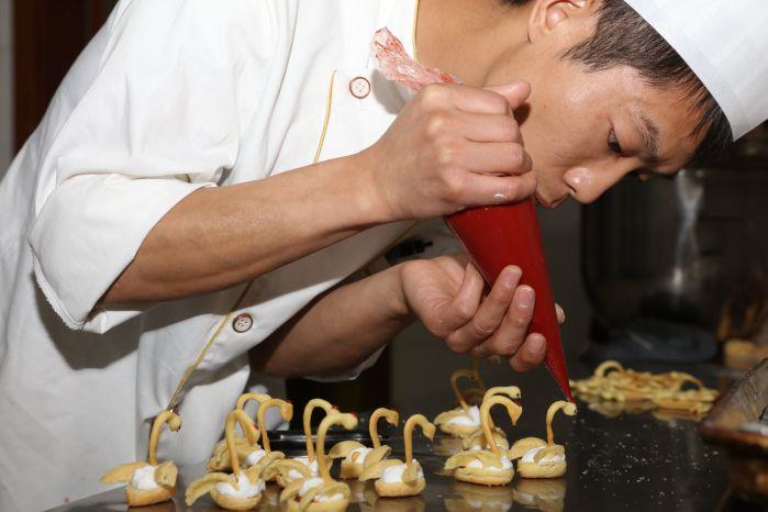 切丝、剁馅儿、捏造型、拼盘……在厨师们的匠心巧手之下,天鹅泡芙、彩虹千层酥、三峡萝卜丝丸、金针龙眼蛋等创意美食与建设部职工们见了面。“哇,这个天鹅捏得好像!”“这个丸子肥而不腻,不错!”……珍馐美味让建设部职工们大饱口福,他们纷纷为心目中的冠军美食投上了宝贵的一票。同时,7名专业评委也对每道菜品进行了打分 。