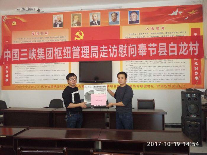 本网讯(徐磊)10月19日,在第四个全国扶贫日、第25个国际消除贫困日到来之际,三峡集团派驻重庆市奉节县永乐镇白龙村第一书记徐磊同志按照集团公司统一部署,在枢纽管理局精心安排下,组织开展中国三峡集团枢纽管理局走访慰问白龙村活动,以实际行动践行国家“扶贫日”号召。这是枢纽管理局继“10·17”国家扶贫日活动向秭归县庙河村开展定点帮扶捐赠后的又一项扶贫举措。