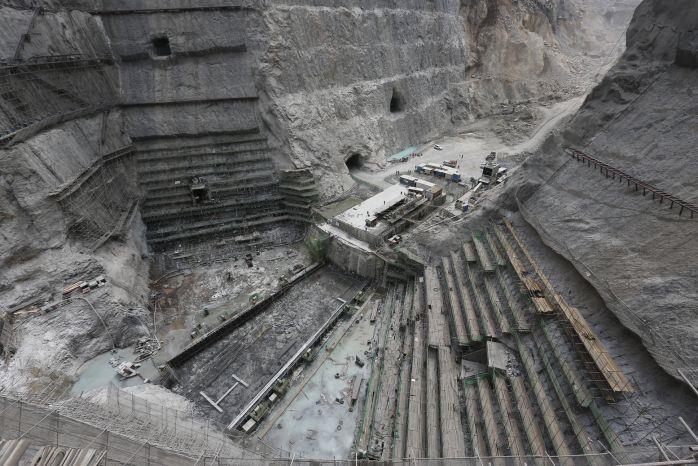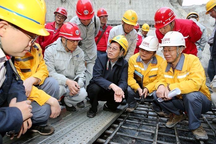 中国工程院院士马洪琪在乌东德大坝建基面施工现场查勘(摄影:邓利强)