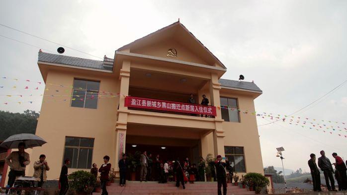 规划建设的新居在青山绿水的映衬下错落有致,整齐统一,外观漂亮,道路宽敞。道路两旁的太阳能路灯的造型具有鲜明的景颇族民族特色。村委会广场边的粉墙上大写着“感恩中国共产党,感谢中国三峡集团”的横幅标语,盈江县委书记陶继清说,搬入新居后,村民们的生活发生了翻天覆地的变化,这其实是他们心里最想说的话。