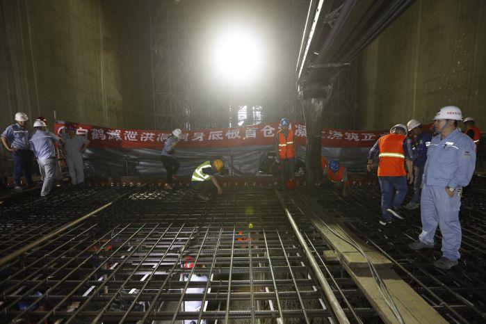 据了解,白鹤滩水电站泄洪洞工程洞身底板首仓混凝土浇筑尺寸长12米,宽15米,高2.5米,总方量450立方米。截至记者发稿时,首仓混凝土浇筑工作仍在进行中。