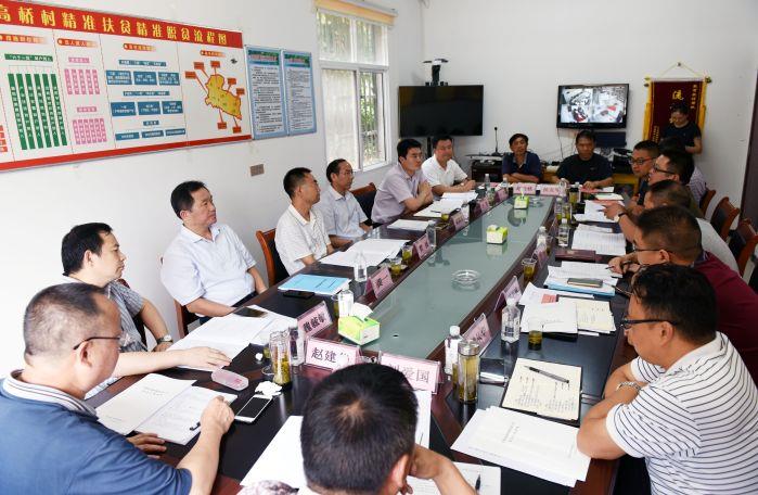 公益基金会一行考察2019年对口支援项目高桥村渡改桥峡洞岩大桥桥址后,召开座谈会听取大桥立项可行性方案及相关事宜汇报,县、镇、村汇报脱贫攻坚情况。