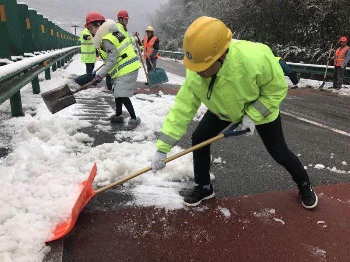 1月3日,三峡梯调中心预报,三峡专用公路沿线有中到大雪,枢纽管理局启动三峡枢纽灾害性天气交通保障应急预案。提示标志牌、情报板早已到位,巡查频次已加密。当晚8点半左右,三峡专用公路大雪如约而至,道路积雪、结冰随后发生。各单位按既定预案展开处置动作,连续不断巡查路况,实时反馈信息,检查站对过往车辆进行了一车一提醒,融雪剂加急撒布。当晚,一线道路交通管理者无眠。4日清晨,三峡公路管理所全所出动赶赴现场铲雪除冰,交警大队全队出动组织交通,应对早时上班高峰。路面积雪结冰,路面行车条件极差,实行了一车一放行,加大前后车距;不少车辆抛锚,交通管理人员手推车辆前进。11时左右,铲雪除冰基本完成,道路恢复正常通行。