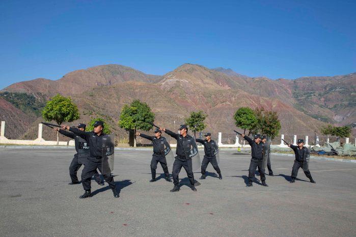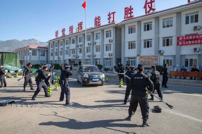 反恐演练模拟的主要情景是:11月16日下午3点,乌东德水电站猪拱地检查站执勤人员报告称,一辆载有4名男子的无证黑色轿车要进入施工区,被执勤人员拦截后,车上男子随即持刀威胁保安,并强行驾车驶入电站核心区。乌东德工程建设部坝区管理部接到报告后,立即组织坝区公安民警加强现场警戒,并组织施工区处突队、安保人员配合警察对恐怖分子成功实施抓捕。