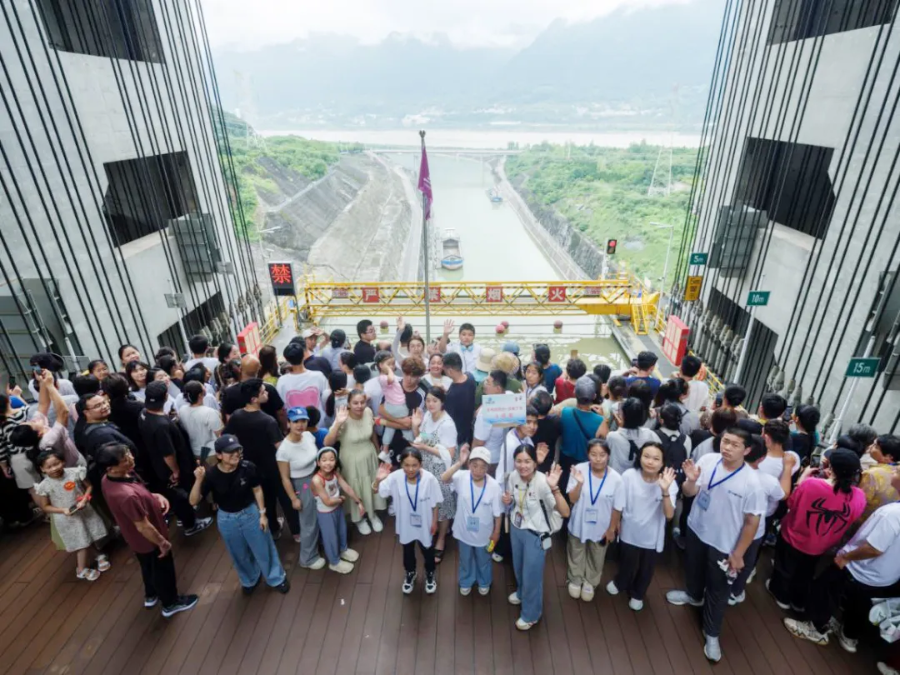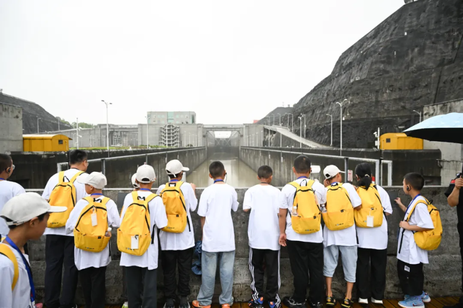 ▲ “三峡娃娃”观看三峡双线五级船闸
