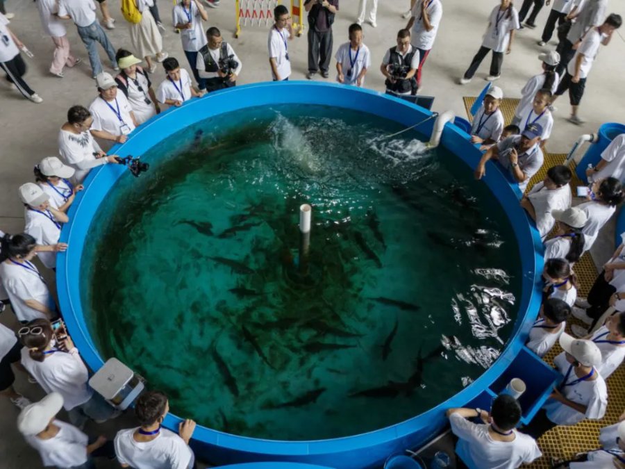 ▲ “三峡娃娃”近距离观察中华鲟