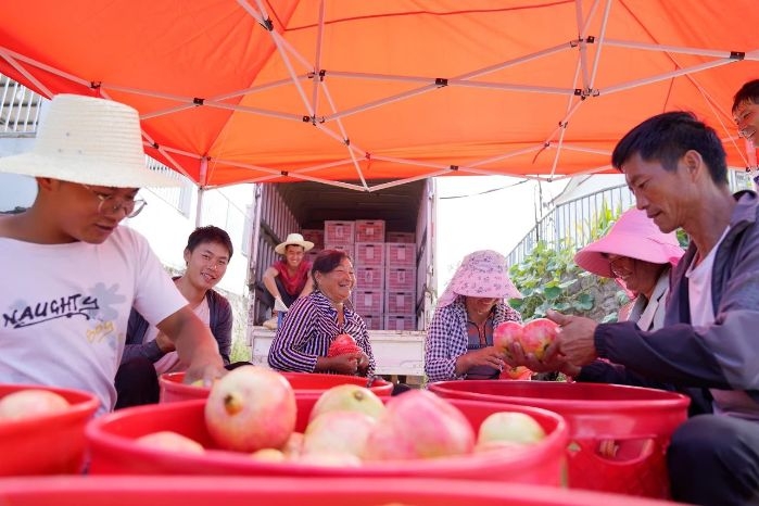 ▲ 村民聚在一起打包石榴
