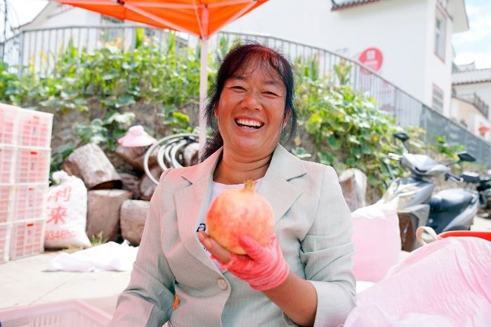 姚天祥是乌东德水电站移民。2019年,他跟其他移民一起搬迁到了新铺子移民安置点,从此以后,种石榴就成了他们日常生活中的重要事情。