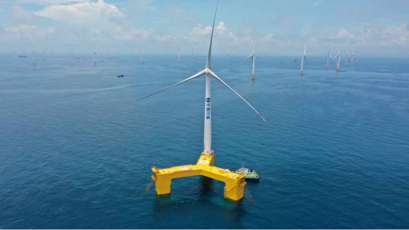 ▲ 全球首台抗台风型漂浮式海上风电机组“三峡引领号”