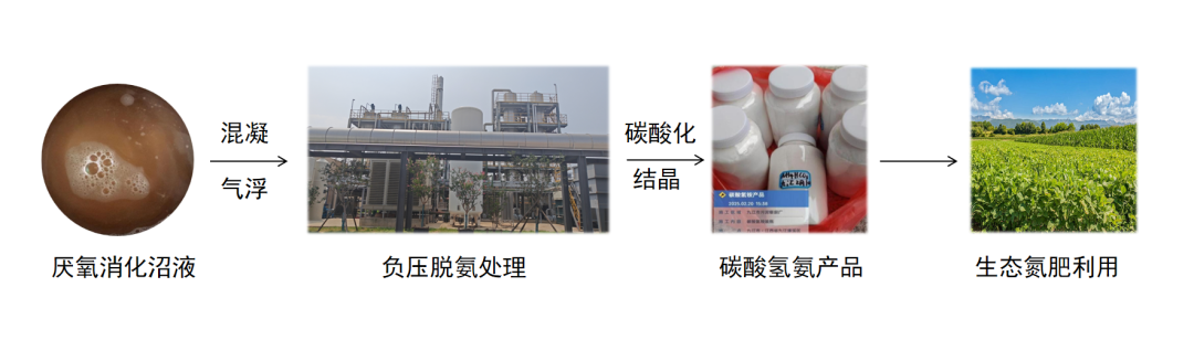 在沼液处理方面,技术团队采用负压提氨技术在密闭系统中“捕获”沼液中的氨氮,与二氧化碳结晶合成纯度达95%的碳酸氢铵氮肥。相较于传统的蒸汽吹脱脱氮工艺,能耗直降30%-50%,每100吨沼液可提取约0.85吨氮肥,实现了沼液中污染物向生态氮肥的转化。