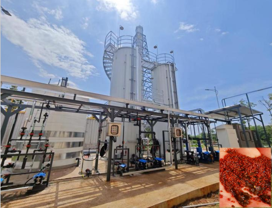 ▲九江两段式厌氧氨氧化中试设备和厌氧氨氧化红菌(右下)