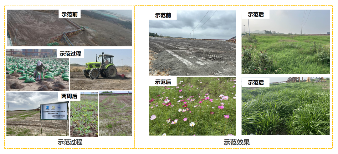 与此同时,技术团队将厌氧消化处理后形成的沼渣,经干化和陈化处理,通过物料调配研究,与铜矿山尾砂进行混合,并通过优化植被选择、施工和养护工法,成功用于九江柴桑区酸性贫瘠矿山的生态修复。
