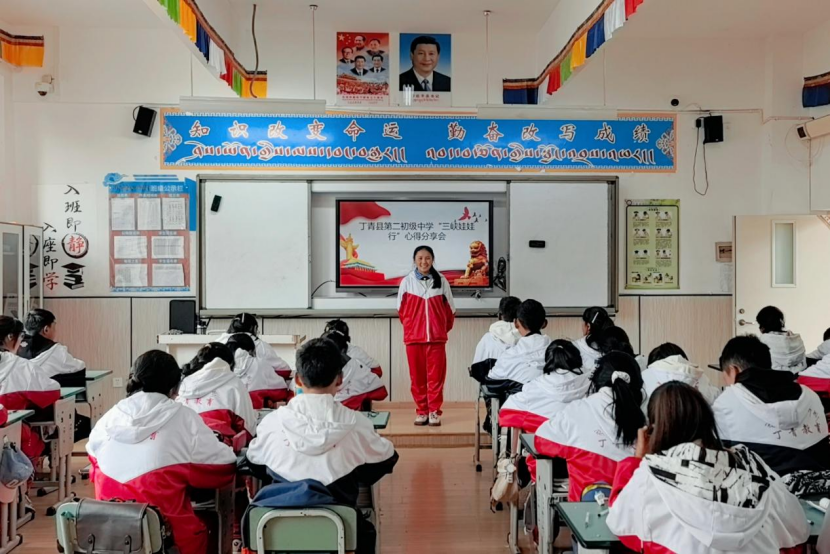 ▲丁青县第二初级中学九年级七班开展“三峡娃娃行”心得分享活动  摄影:但棣瑶