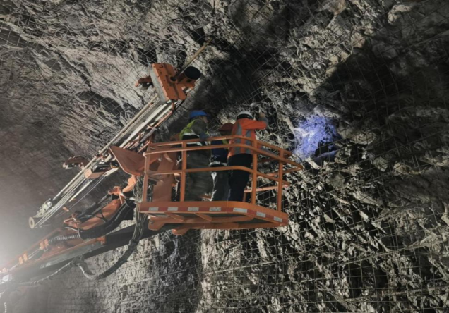 ▲ 图为班组成员在施工洞开展锚杆注浆工艺性试验,经无损检测,验证了配比的有效性。该实践创新为高寒、复杂地质条件下的锚杆施工提供可复制解决方案。