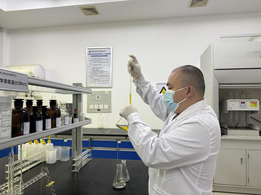 在厂区化验室,化验人员专注地对各项水质进行检测。试管中水样轻轻晃动,仪器屏幕上数据不断跳动......他们熟练地操作着分光光度计、干燥箱等专业设备,准确测量MLSS(混合液悬浮固体浓度)、MLVSS(混合液挥发性悬浮固体浓度)、SVI(污泥容积指数)等关键指标。