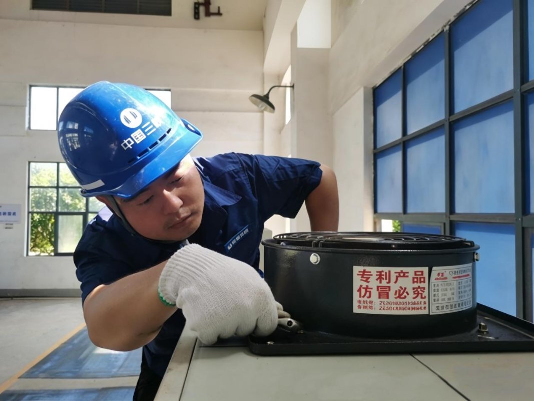 图为检修员对变频控制柜加装轴流风机优化散热性能