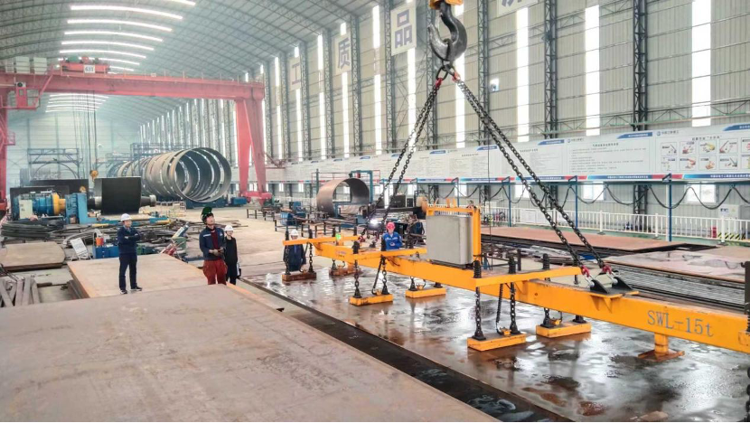 ▲1000兆帕成品钢板进入钢管厂加工 三峡建工供图