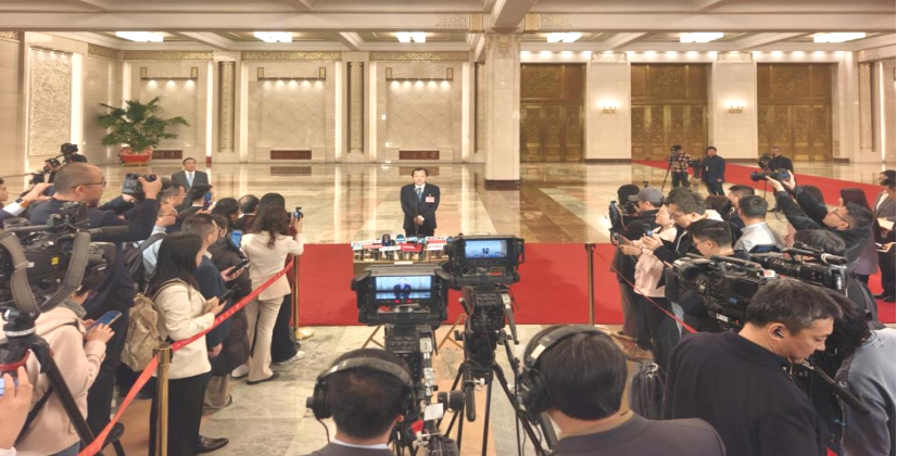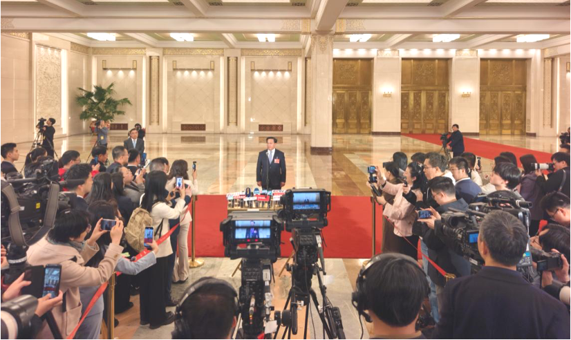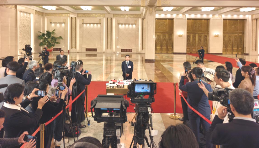 ▲ 3月9日,十四届全国人大四次会议第二场“部长通道”集中采访活动在北京人民大会堂举行。农业农村部部长韩俊接受媒体采访。