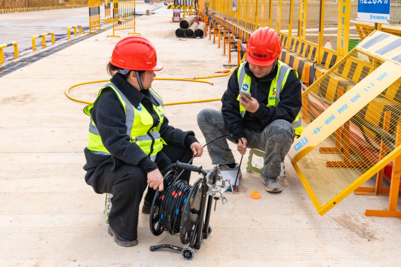 ▲ 为切实保障工程施工安全,项目工作人员开展土体侧向位移监测作业,通过手机APP查看监测数据,预判土体变形趋势,强化风险源头管控。摄影:王于成