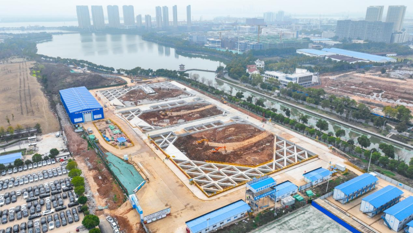 本网讯(王于成 谢泽)江城回暖,万象更新。近日,记者在长江环保集团所属武汉汤逊湖流域综合治理二期工程现场看到,其核心子项——藏龙岛地下净水厂项目正稳步有序推进节后复工复产,正式迈入40万立方米超大型深基坑土方开挖的攻坚阶段。