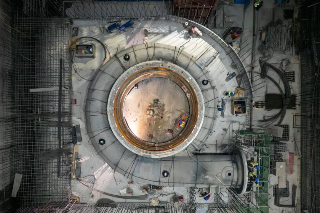 ▲ 平坦原抽水蓄能电站2号机组蜗壳层施工面貌。