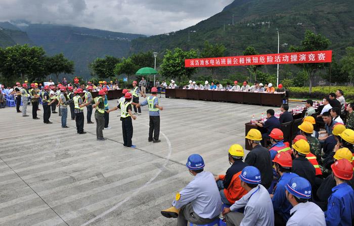 溪洛渡施工区开展班前会和预知危险操演竞赛活动