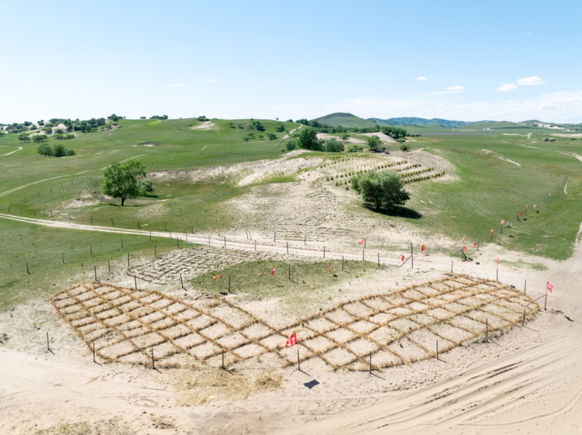 ▲ 浑善达克沙地上正在治理的沙斑(2025年6月摄)摄影:陈磊