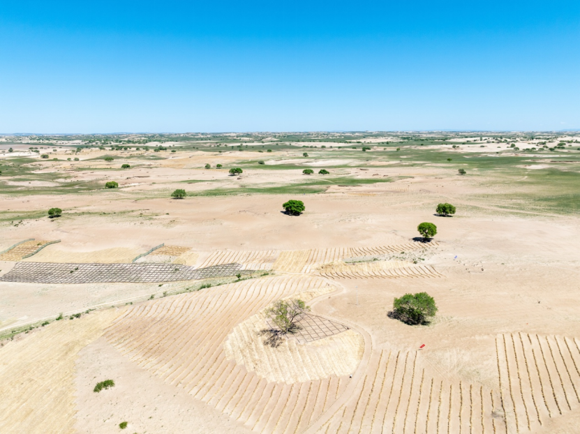 ▲ 浑善达克-科尔沁沙地上的“草-灌-乔”立体防护体系(2025年6月摄)摄影:陈磊