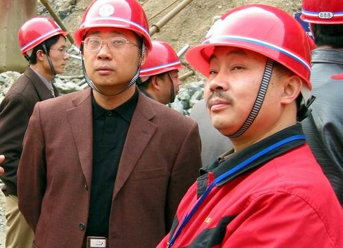 中国三峡总公司副总经理、金沙江开发有限公司筹建处主任樊启祥(左)在溪洛渡电站右岸建设工地
