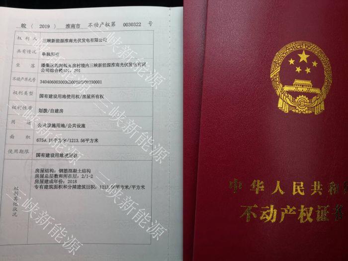 本网讯(阮少波)7月26日,华东分公司安徽峡潘光伏电站顺利取得升压站不动产(房屋)权证。