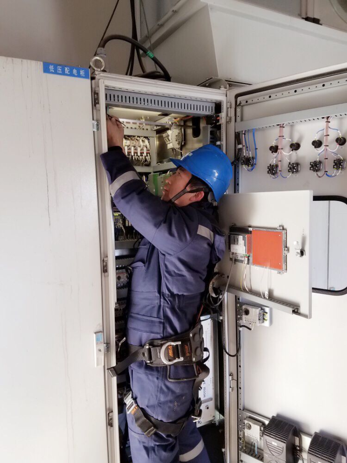 2015年5月,担任商都电站现场负责人期间,他发现35kV集电线路两基塔架设计选型存在缺陷,与所处的地形条件不符,及时找设计单位进行了核算,重新做了改造设计。电站35kV集电线路大风天频繁跳闸现象一直困扰着运行人员,由于线路较长且无距离保护,很难找到放电点。他多次带领员工夜晚巡检,在零下二十度的寒风中蹲守,最终发现了三处引流线放电点,及时进行了安全处理。在风机全年检修中,发现750kW风机高速闸体存在偏刹现象,咨询厂家进行了调整,每一个细节都不放过,确保电站安全运行。商都电站作为三峡新能源首个风光互补电站,为三峡新能源风光资源综合开发利用提供了良好示范。