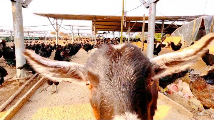 黄色的油菜花与蓝色的光伏板交相辉映,光伏板下成群的鸡鸭牛羊,犹如一个疯狂动物城,让村民的心头热乎乎的。