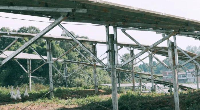 光伏板下能种养这么多东西,这一切的前提和重点就是高支架光伏板。建设初期,考虑到农光互补,将传统1米高的支架改造为高支架,低沿2.5米,高沿根据地势在3-4米之间,为板上光伏发电、板下种植养殖提供了有利条件。