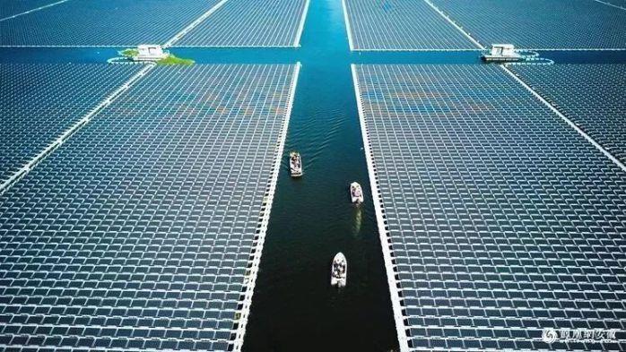 三峡新能源安徽淮南150兆瓦水面漂浮光伏是全球最大的水面漂浮光伏电站,位于安徽省淮南市潘集区,是“安徽省两淮采煤沉陷区国家先进技术光伏示范基地项目”之一,总投资近10亿元。