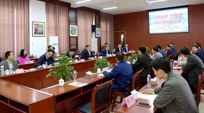 实地调研结束后,雷鸣山与万安县委县政府主要负责同志座谈。座谈会上,万安县委书记李伟平代表县委、县政府对雷鸣山一行的到来表示欢迎,对三峡集团长期以来定点帮扶万安县表示衷心感谢,并详细介绍了万安县经济社会发展及脱贫攻坚工作进展情况。