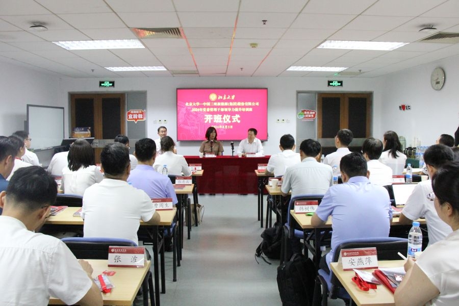 (通讯员 徐新)为深入学习贯彻习近平新时代中国特色社会主义思想和党的二十大精神,切实提升公司党委管理干部政治素养和管理能力,8月5日至9日,三峡能源在北京大学圆满举办2024年党委管理干部领导力提升培训班。北京大学政府管理学院党委副书记、教授句华,三峡能源纪委书记李化林出席开班仪式并致辞,北京大学政府管理学院高端教育培训中心执行主任李延国主持开班仪式,公司47名党委管理干部参加培训。