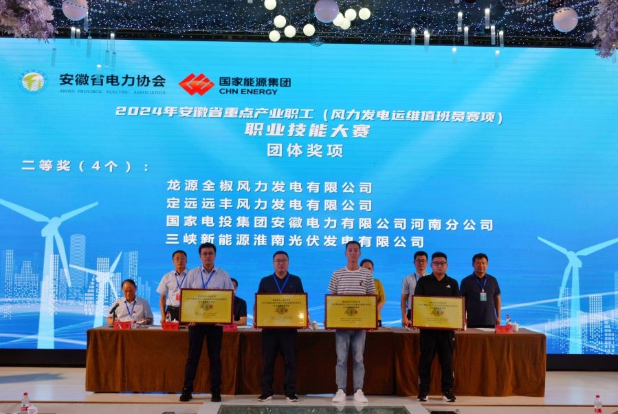 (通讯员 李均森、张泽尧)8月22日,由安徽省总工会、省人社厅等单位主办的2024年安徽省重点产业职工(风力发电运维值班员赛项)职业技能大赛圆满闭幕。由三峡能源安徽分公司张紫赫、马良红组成的淮南公司代表队荣获团体二等奖,马良红在个人组竞赛中荣获三等奖。