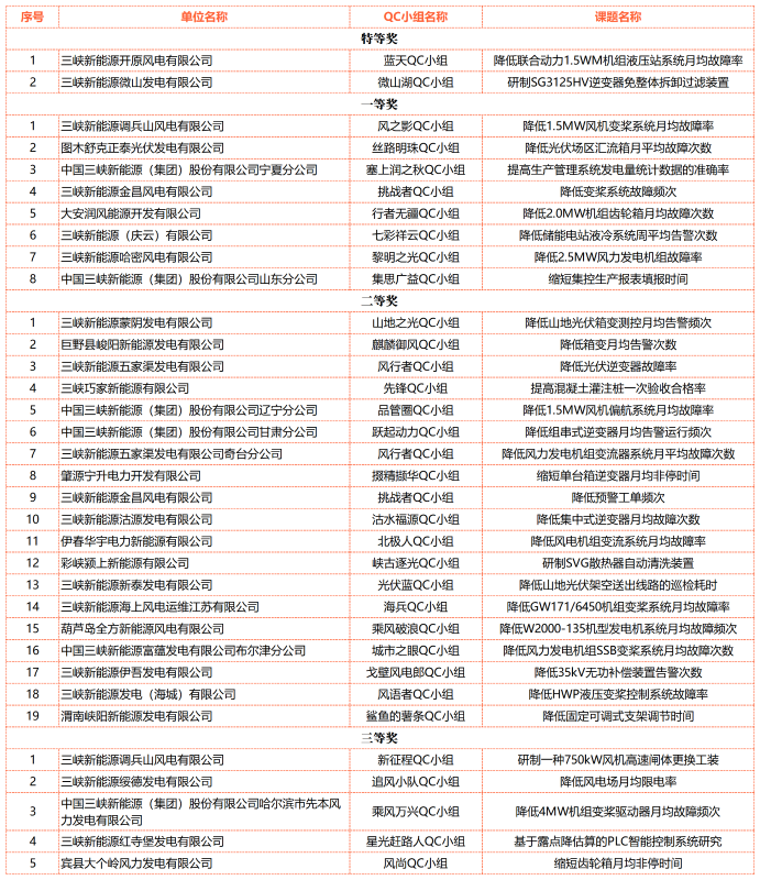 三峡能源高度重视QC小组活动,大力支持员工开展QC小组活动,在工作岗位中运用科学方法和工具,解决和改进工作现场设备设施的生产工艺、工程质量等存在的问题,提高经济效益,提升员工技术操作水平和解决问题的能力。公司将继续大力推广QC小组活动成果应用,鼓励小组之间加强交流学习,进一步推动优秀成果转化。