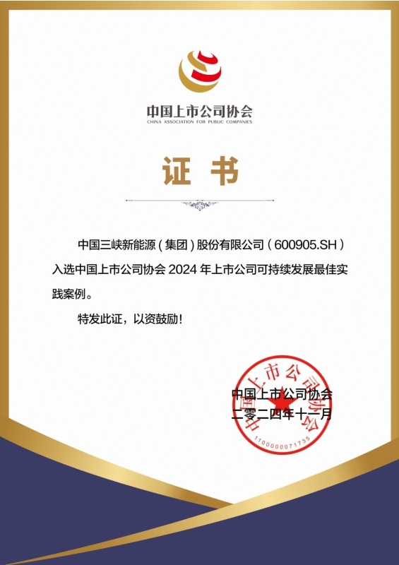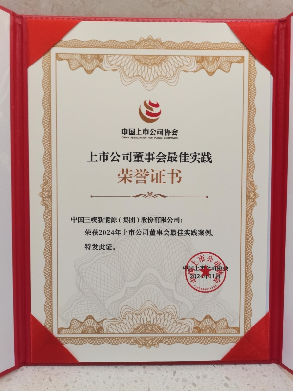 近日,中国上市公司协会第三届理事会第五次会议、2024上市公司可持续发展大会在京召开。三峡能源凭借在董事会运作及可持续发展领域的优秀表现,成功获评“2024上市公司董事会最佳实践案例”“2024上市公司可持续发展最佳实践案例”两项荣誉。