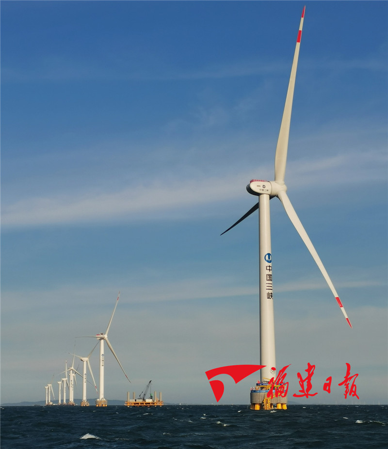 三峡福清兴化湾二期海上风电场是三峡集团与福建能源集团共同投资建设的大容量风机首运试验风场,面积约18.5平方公里,规划装机45台,包括3台8兆瓦及以上大容量机组,总容量280兆瓦。项目2018年9月开工建设,2020年6月首批机组并网,计划年底实现全部机组并网发电。