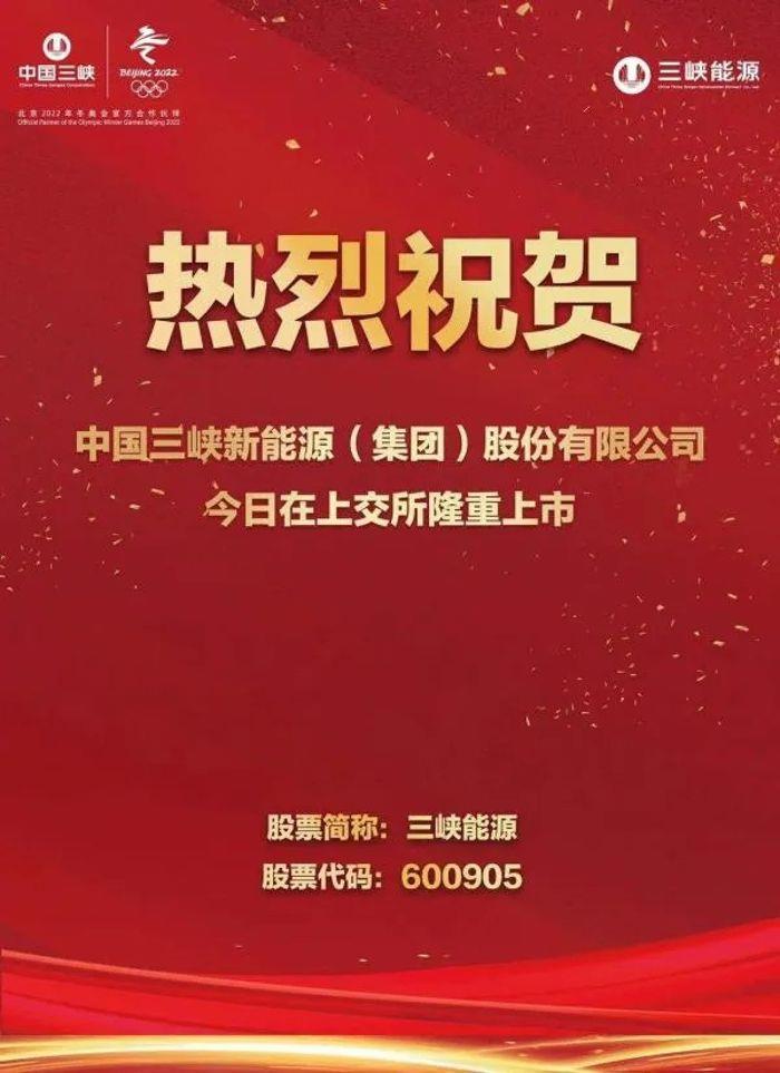 “今天三峡能源正式在A股挂牌上市,成为中国电力行业史上最大规模IPO、A股市值最高的新能源上市公司。我们将以此上市为契机,进一步完善三峡能源法人治理结构,加强市值管理,用好用足募集资金,努力将三峡能源打造成 A 股市场大盘蓝筹股,努力为社会奉献更多清洁能源、为股东创造更多投资价值,在构建以新能源为主体的新型电力系统中发挥更大作用、作出更多贡献。”中国三峡集团党组书记、董事长雷鸣山在上市后表示。