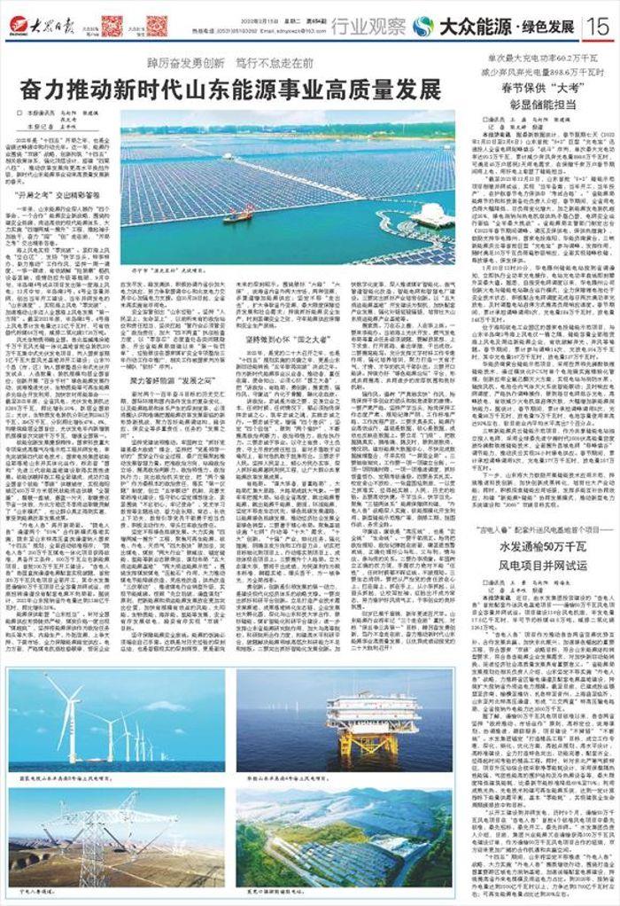 “截至2021年12月31日,山东首批‘5+2’储能示范项目相继并网试运,实现‘当年备案、当年开工、当年投产’,在护航春节电力保供中‘考试合格’。”省能源局能源节约和科技装备处负责人介绍,春节期间,全省用电负荷大幅降低、日负荷变化增大,加之新能源发电装机超过35%,绿电消纳与热电机组供热矛盾凸显,电网安全运行面临“全年最大挑战”。省能源局主管部门制定出台《2022年春节期间调峰、调压及保供电、保供热措施》,鼓励支持华电滕州、国家电投海阳、华能济南黄台、三峡新能源庆云等首批巨型“充电宝”参与调峰、发挥作用,随时满足10万千瓦负荷毫秒级响应,全面实现错峰收储、释放绿电、保发保供。