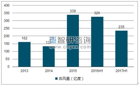 2013-2015 年及 2016、 2017 年上半年弃风电量(亿度)